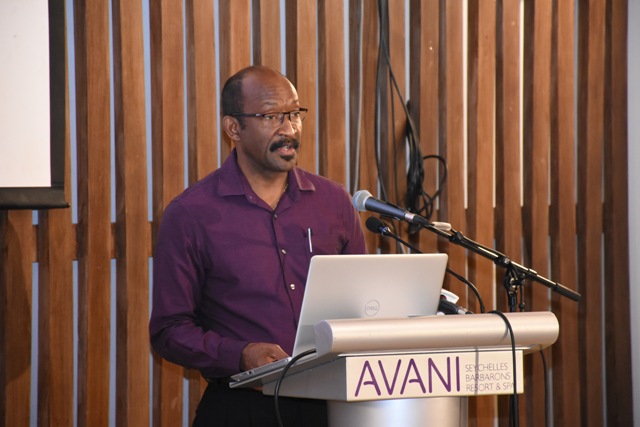 | Vice President Meriton addressing participants at the opening of the two-day conference on Tuesday. (Seychelles Nation) Photo License: CC-BY |