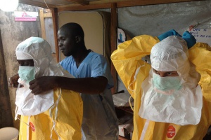 Personnel working in Ebola hit countries putting on their protective gears. (European Commission DG ECHO/Flickr) Photo License: (CC BY-SA 2.0)